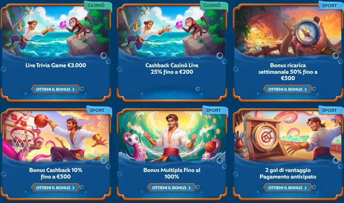 - Bonus Ricarica: sfrutta le promozioni settimanali per ottenere percentuali extra sui depositi successivi.